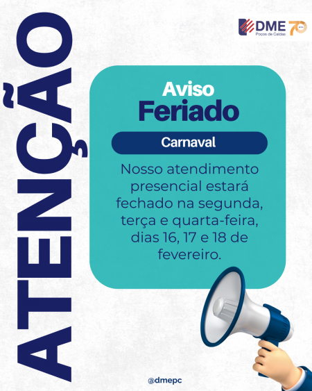 Nos dias 16, 17 e 18 de fevereiro (segunda, terça e quarta-feira), o atendimento presencial estará fechado.